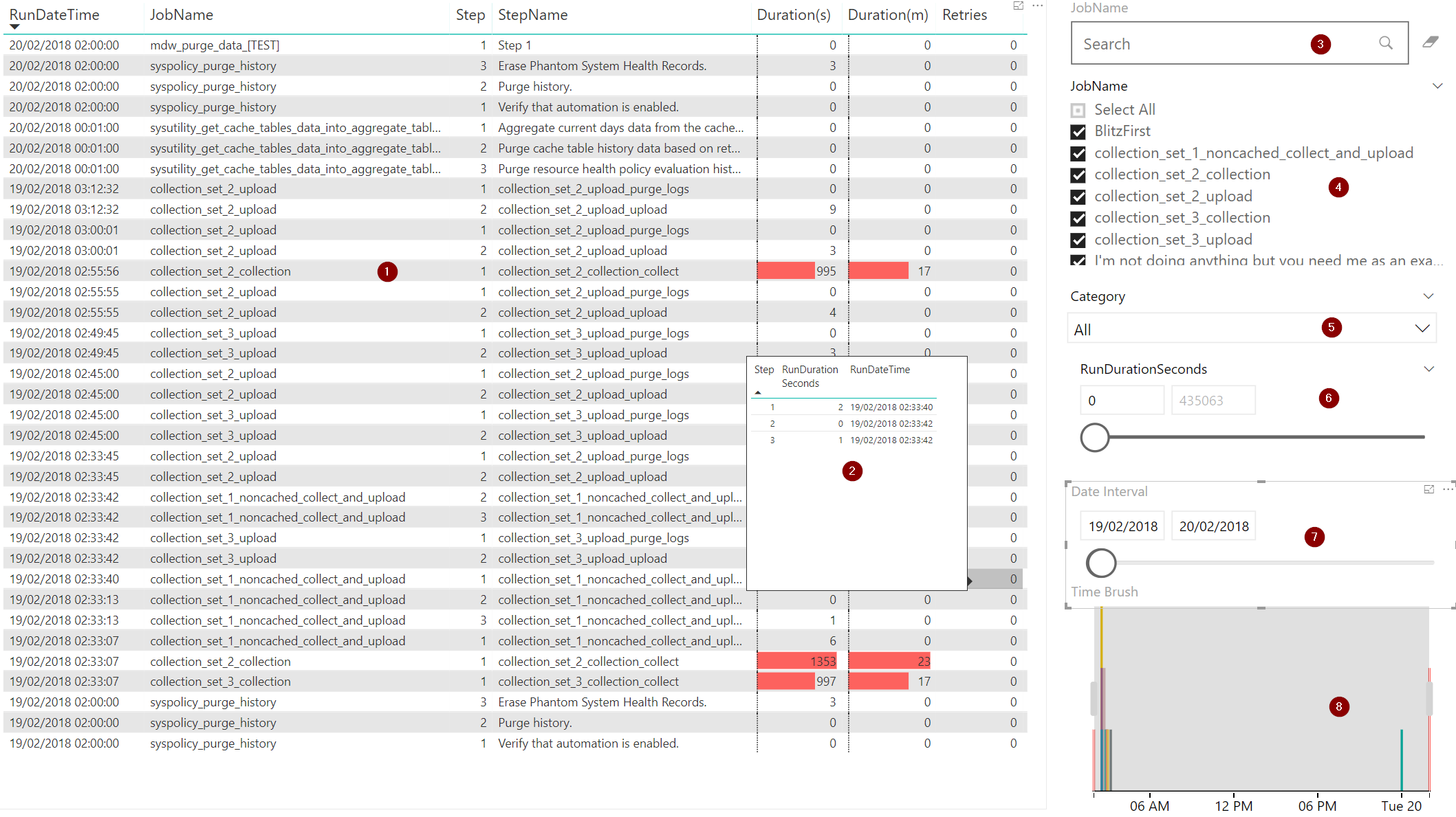 - Job Duration Graph Tooltip: The added value for this report vs the standard one, by hovering on each row you’ll see the duration graph for the job