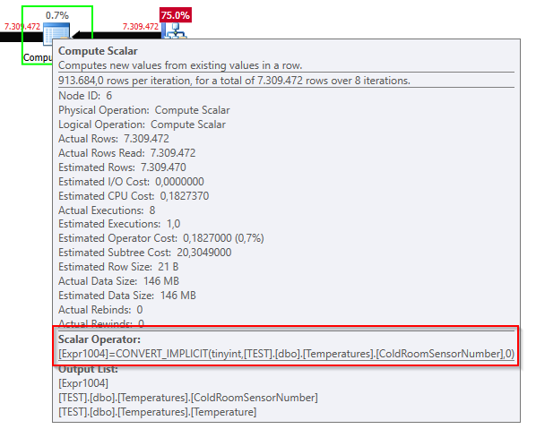 - You only see that there is an implicit conversion going on by exploring the properties of the “Compute Scalar” node (or by using SentryOne Plan Explorer)