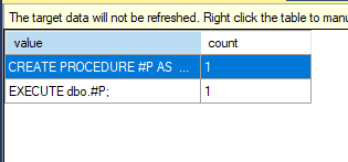 However, setting NOCOUNT ON at the beginning of the batch above makes no difference, only DONEINPROC Tokens (as the name implies, these tokens are the same as the DONE Tokens, but for statements inside a SP) are suppressed, hence all the DONE tokens that are sent by the batch still come to the client slowing everything down, so, let’s try with a procedure: