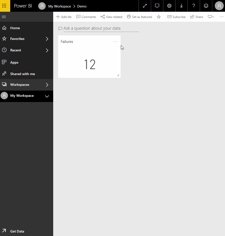 There is the fast and easy way, using PowerBi’s Dashboard alerts feature, and there is the more powerful and flexible way that you’re not going to see (but you can still ask me if curious); let’s go with the fast way: