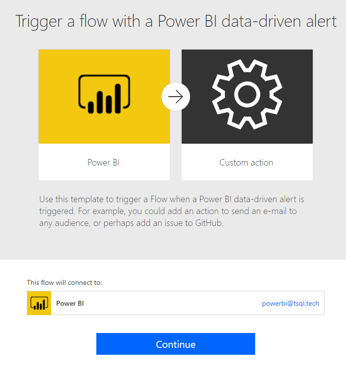 Boom, the alert it’s a trigger in Microsoft Flow, which means that it can trigger whatever chain of events you want, from simply sending an email to a distribution list, to logging the event, to even send a REST request to PowerBi to try again the refresh if certain conditions are met. The only limit is your fantasy (and the licensing model that your corporation have, really).
