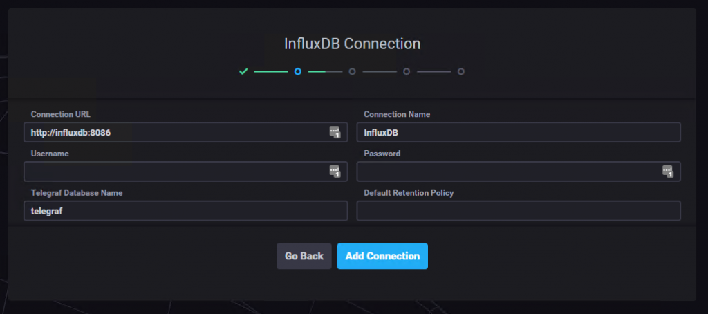 Note that if you’re monitoring something that’s on docker you have to add it to this docker monitoring network in order for telegraf to be able to reach it; seek a proper Docker networking configuration guide if you’re not able to reach whatever you want to monitor in another container.